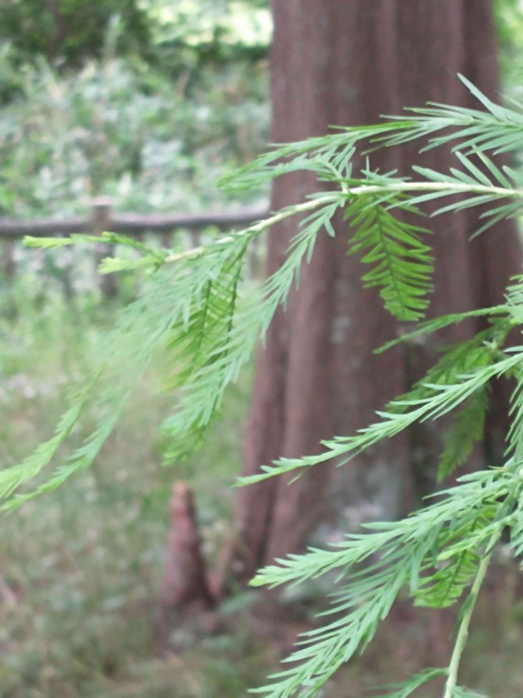 ぱっと見、🌲メタセコイアと思うけど、水辺に生えてて気根もあるから判断できます