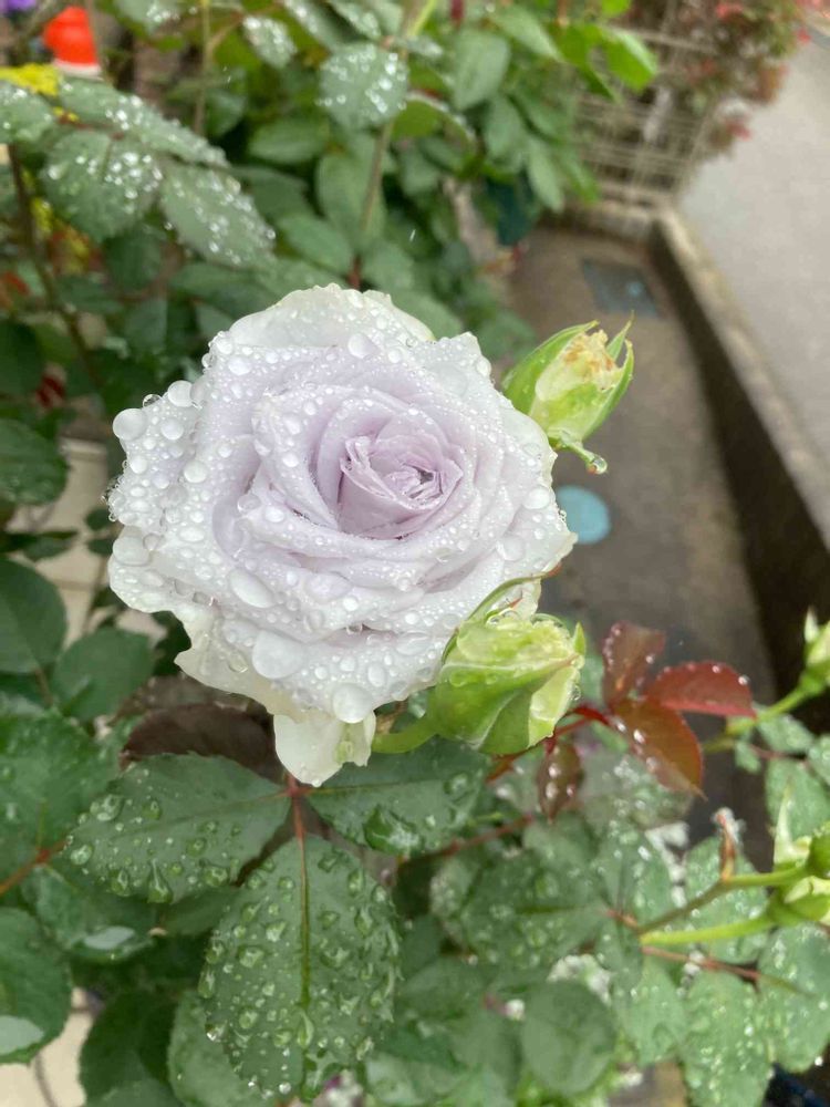 ブルーグラビティ2番花が梅雨の雨に濡れて咲いてました。これはこれで綺麗