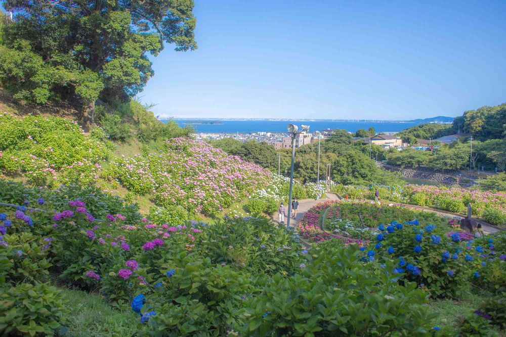 海の見える紫陽花の丘