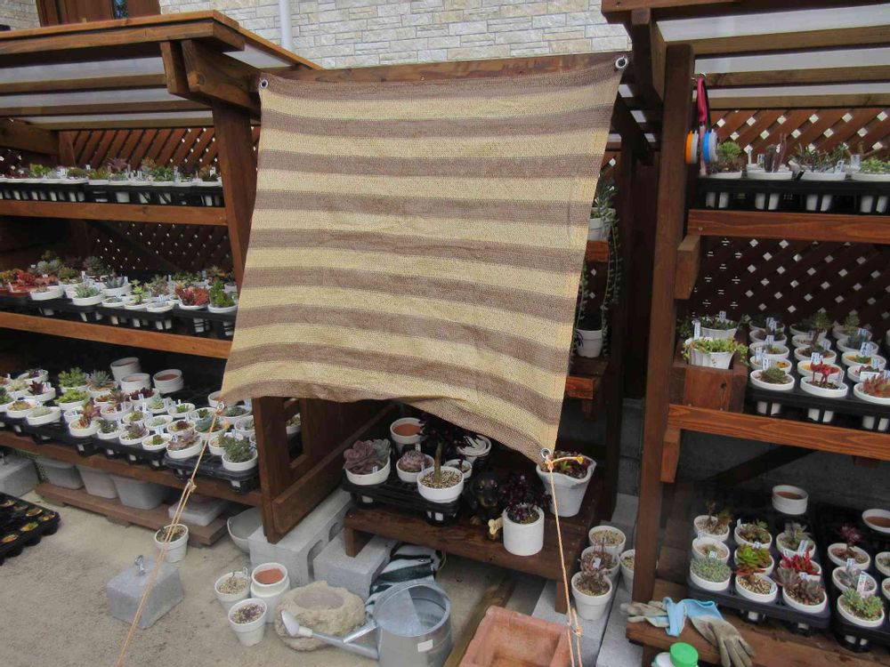多肉棚に100均のウインドオーニングを取付けました。(^^) ブログ詳細です。(^^♪