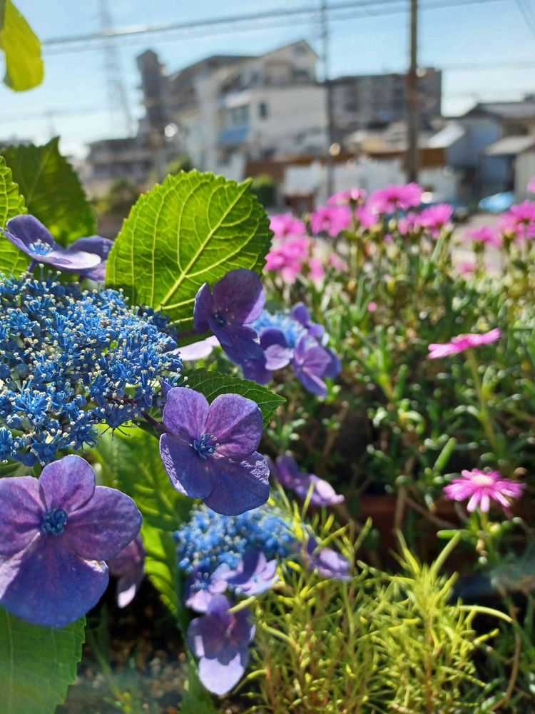 紫陽花もちょっと日陰でも良いかなって 思いがちだけど お日様いるよね〜