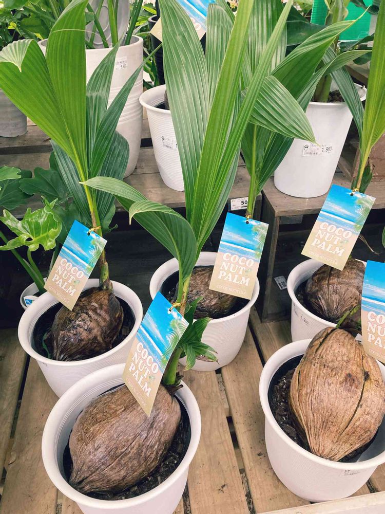 スゴイ‼️ヤシの実から生えてる〜‼️(当たり前ですね😅)初めて見ました😆これはこれで、かわいいですよね🥰どこのHCですか?