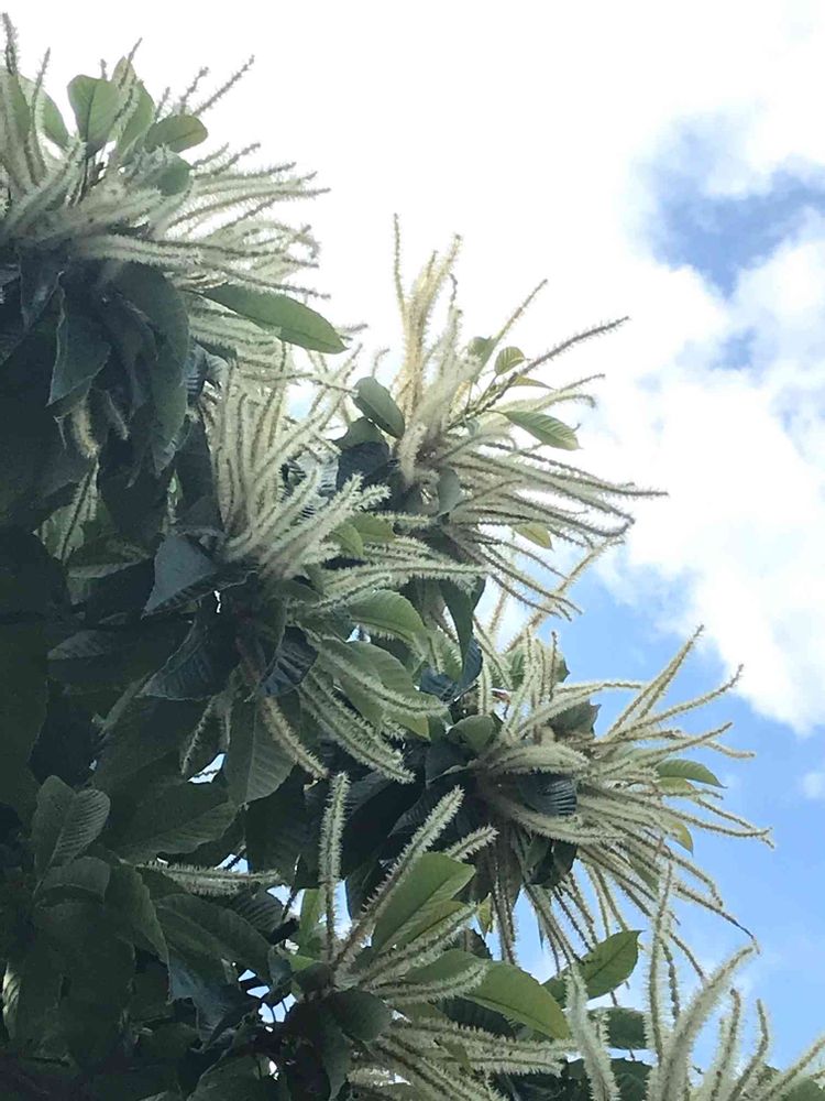 栗の花。よく見るとイガグリの赤ちゃんみたいなのがあるんですってね?!