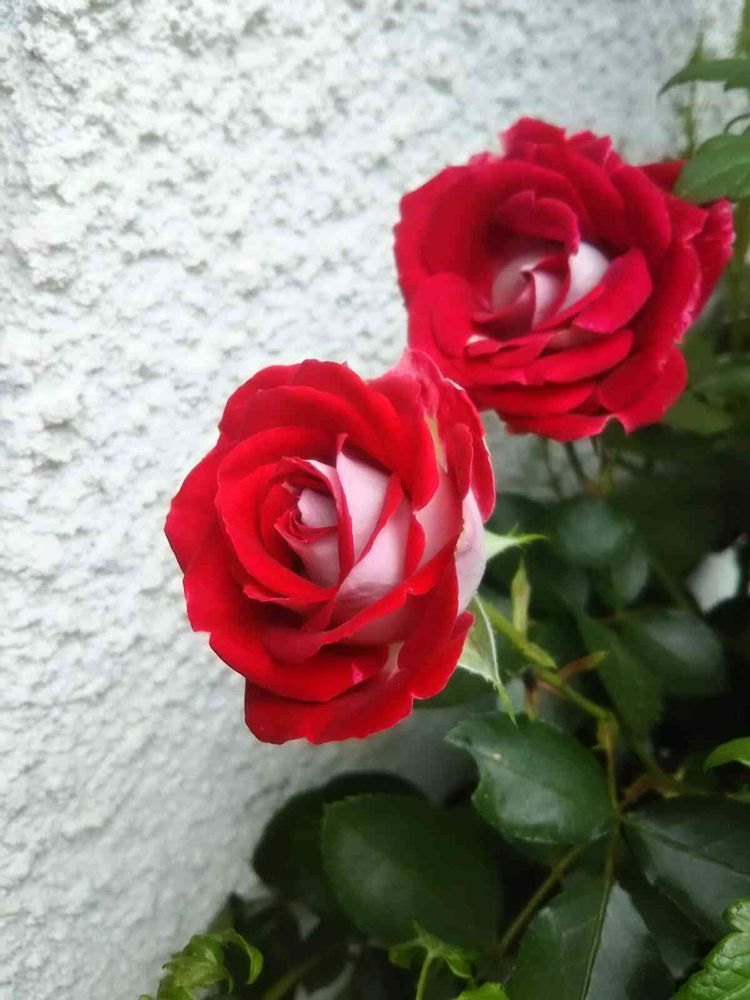 色は真っ赤だけど、花びらの裏が白いんですね😍✨不思議な薔薇で、綺麗ですねー💓