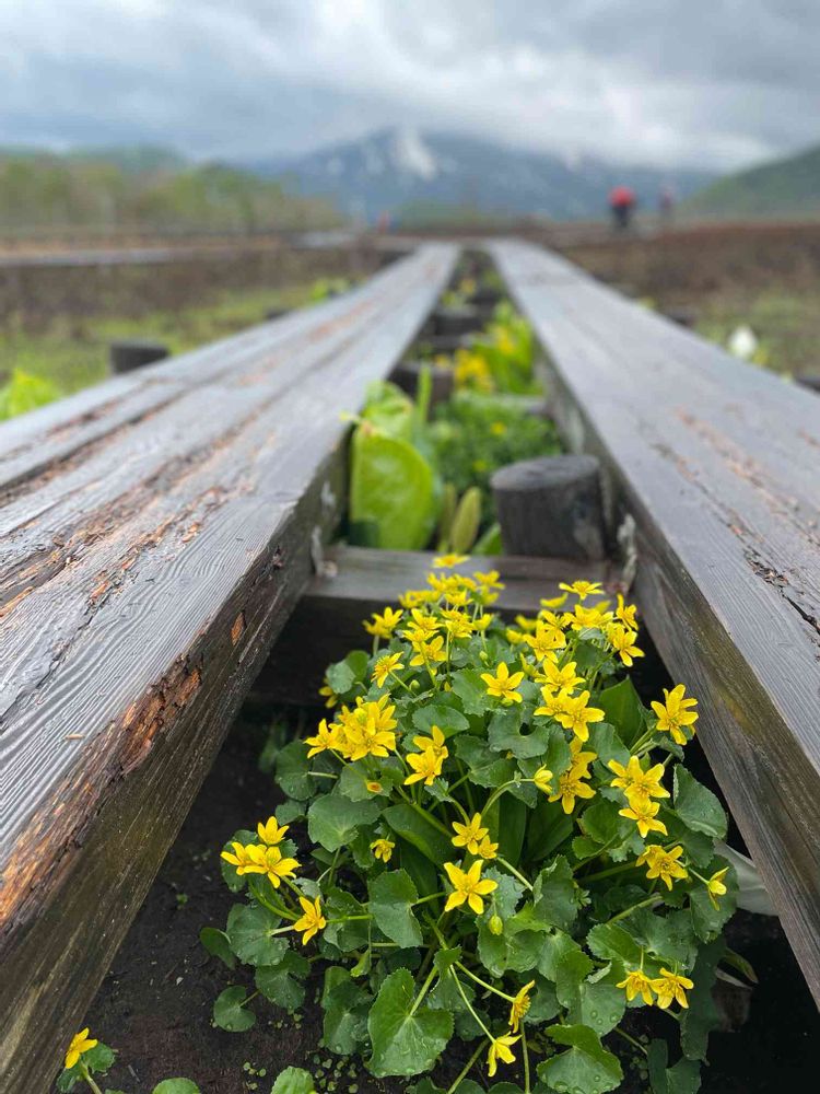 💛木道の間💛 🤍両側には水芭蕉🤍