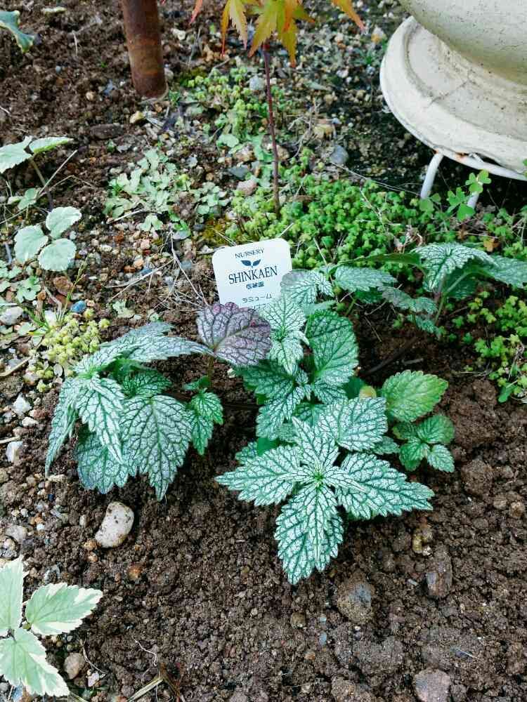 近くに斑入りのイワミツバがグランドカバーとして頑張ってくれてるけど、コケみたいなのと色が被ってるので、違う感じのを植えてみました。