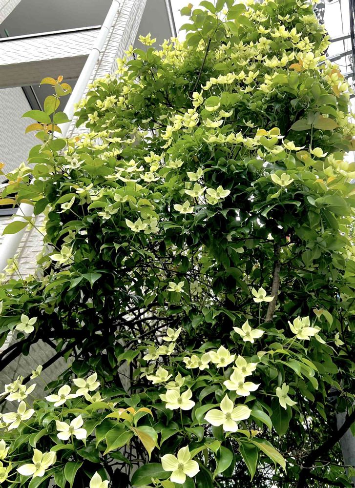 エコクラフトレッスンに行く途中、満開のヤマボウシを見上げて💚💚💚