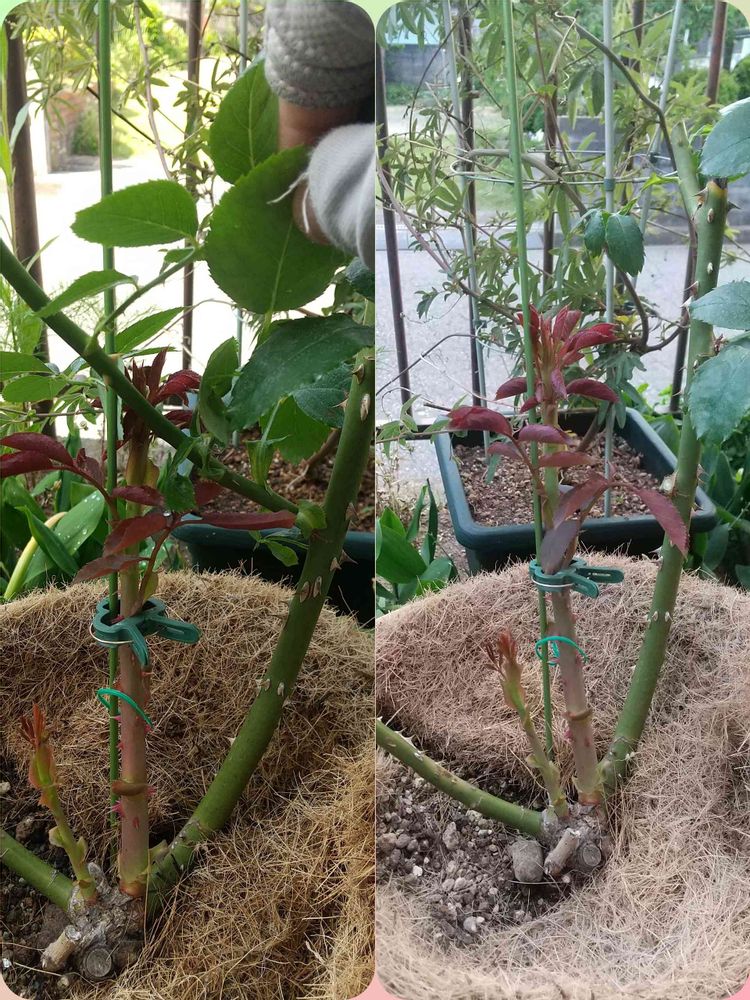 バラのシュートが伸びてきて、既存の枝を切るかどうか悩んで、切りました。