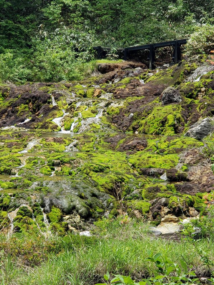 強酸性の泉の栄養で育ったコケ