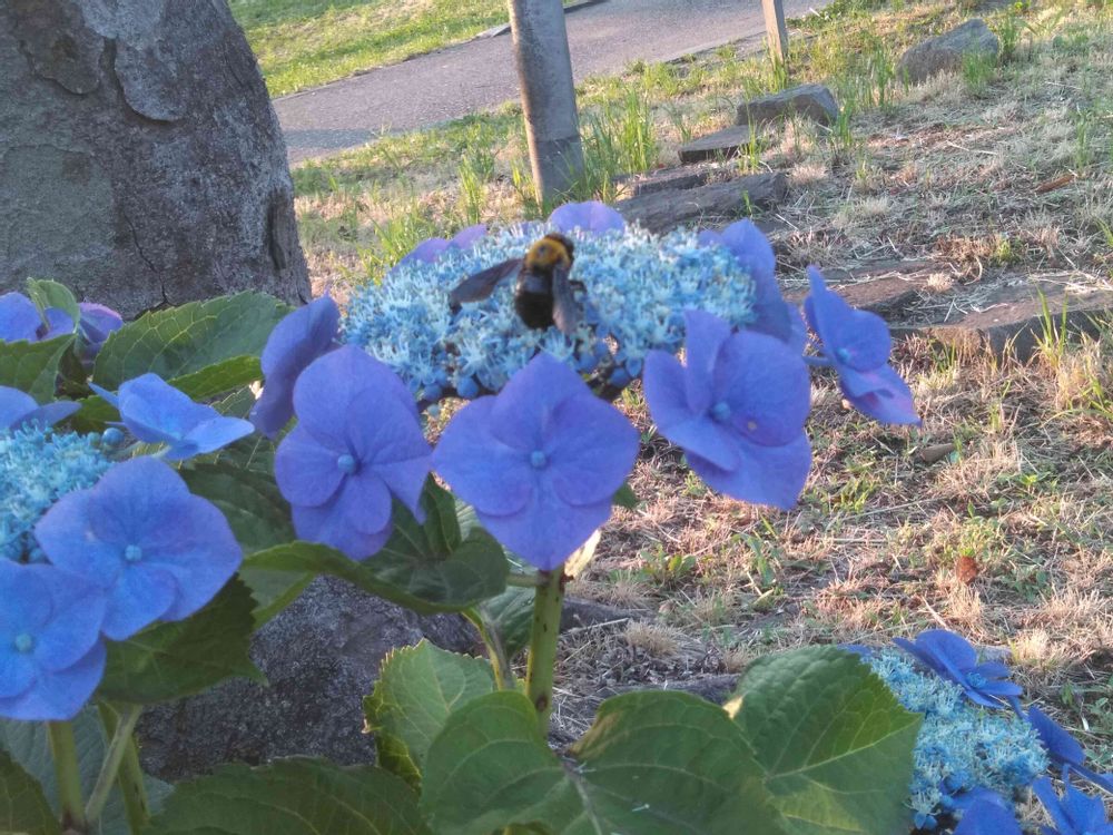 こんなに早く活動しているとはビックリ❗ただ💙の紫陽花🤳していて気がついたよ☺
