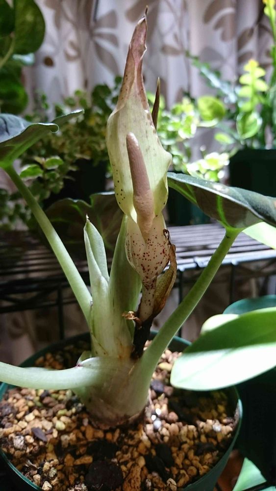 ブラックベルベットに花が咲きました。サトイモ科特有な花ですね。