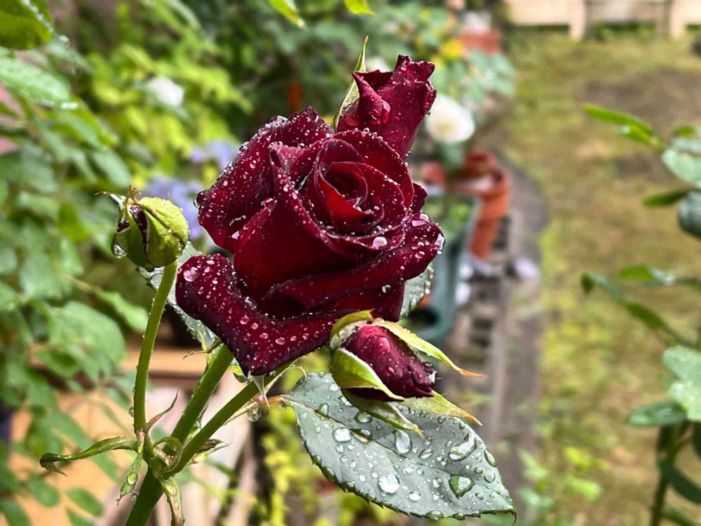 雨粒を乗せたシックな黒薔薇🌹…綺麗ですね~🥰素敵です💖💖💖