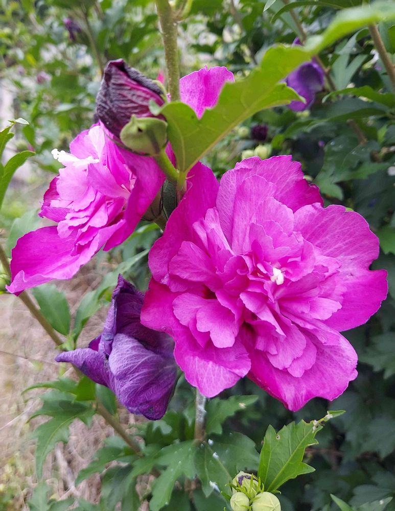 鮮やかに、イキイキした華やぎを見せて咲き誇るムクゲの華やぎ素敵だなぁ☺️