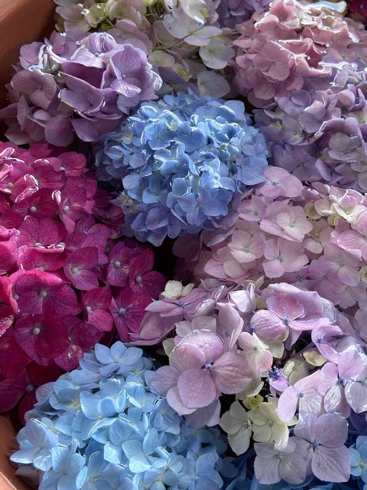 わーアンティークな色合いのアジサイの花手水、ステキですね💠💠💠