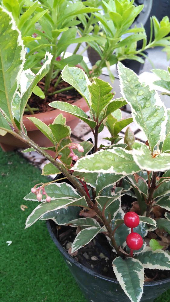模造の赤い実が挿して売られていましたが、お花が咲いた後に本物の実が出来るかな😄