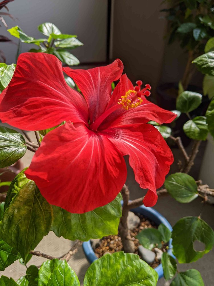 桔梗に気を取られていたら、植え替えたハイビスカスが咲いてました😅
