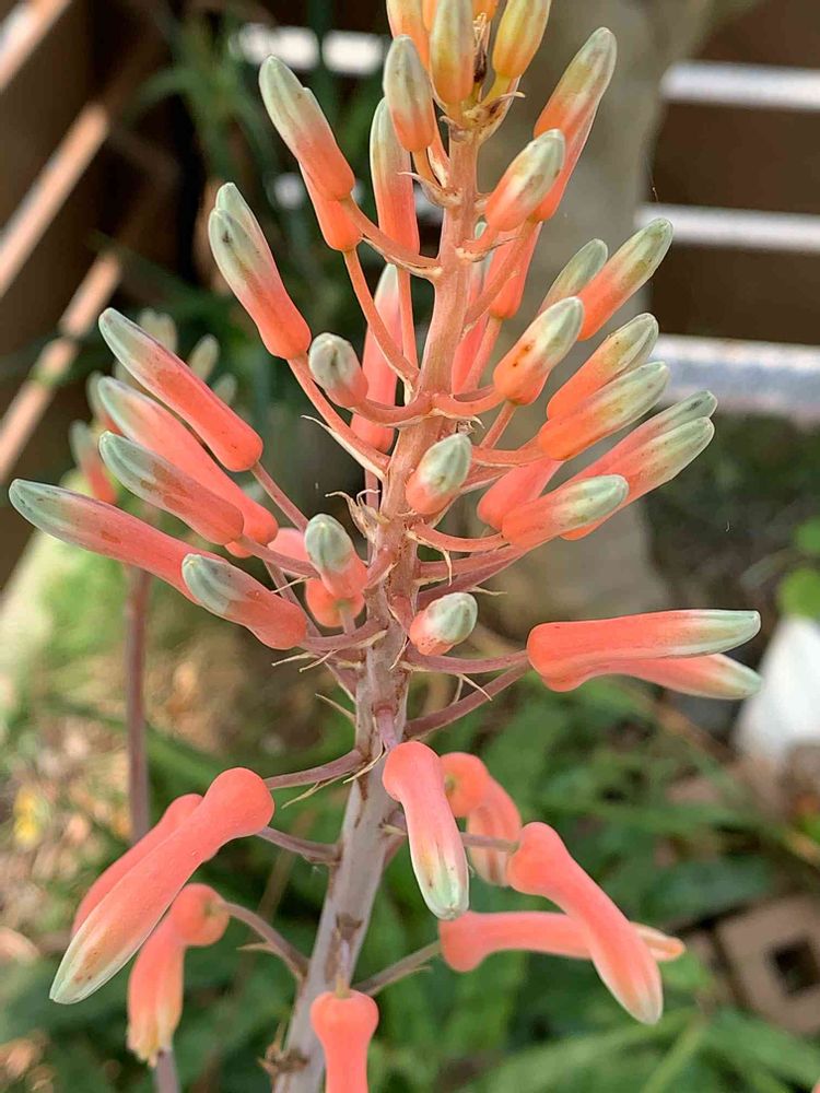 頂いたアロエベラですが2年続けて背丈の高いオレンジの花が咲いてくれます。