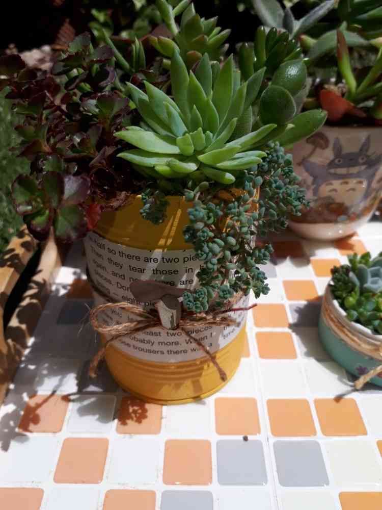 今日は庭で、昨日作ったリメ缶に多肉の寄せ植え~✨