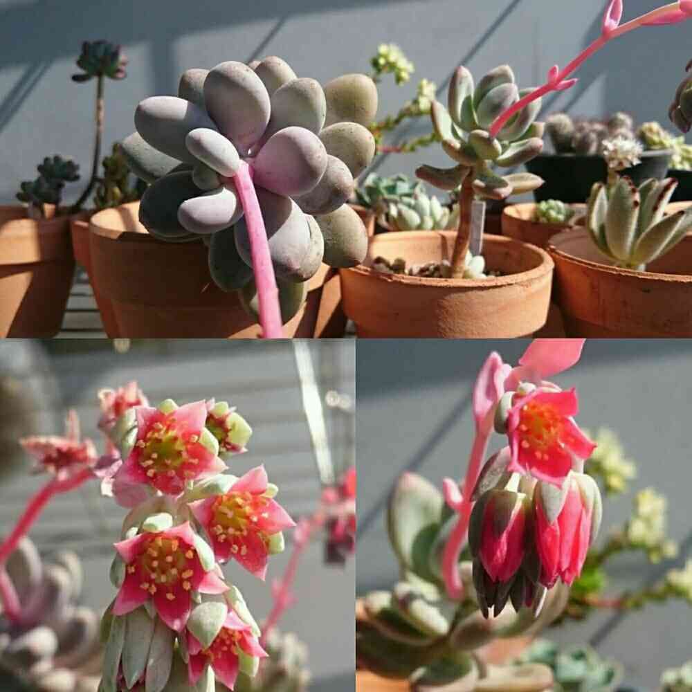 美人姉妹さんたちも開花~。三日月美人さんのほうが花の色濃いかな