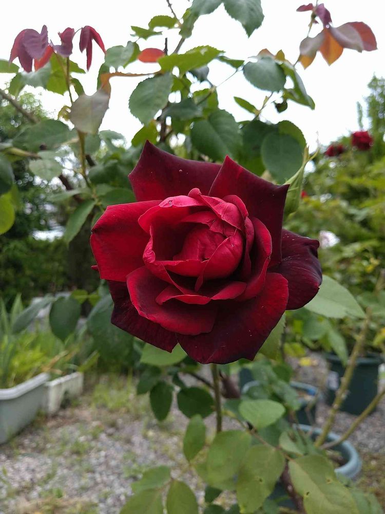 うちも黒赤のアンクルウォルター咲き出しました。THEバラの容姿香りは微香😅強香といえば爽の香りが強くて、河本ローズの強香渡合恐るべし❗️