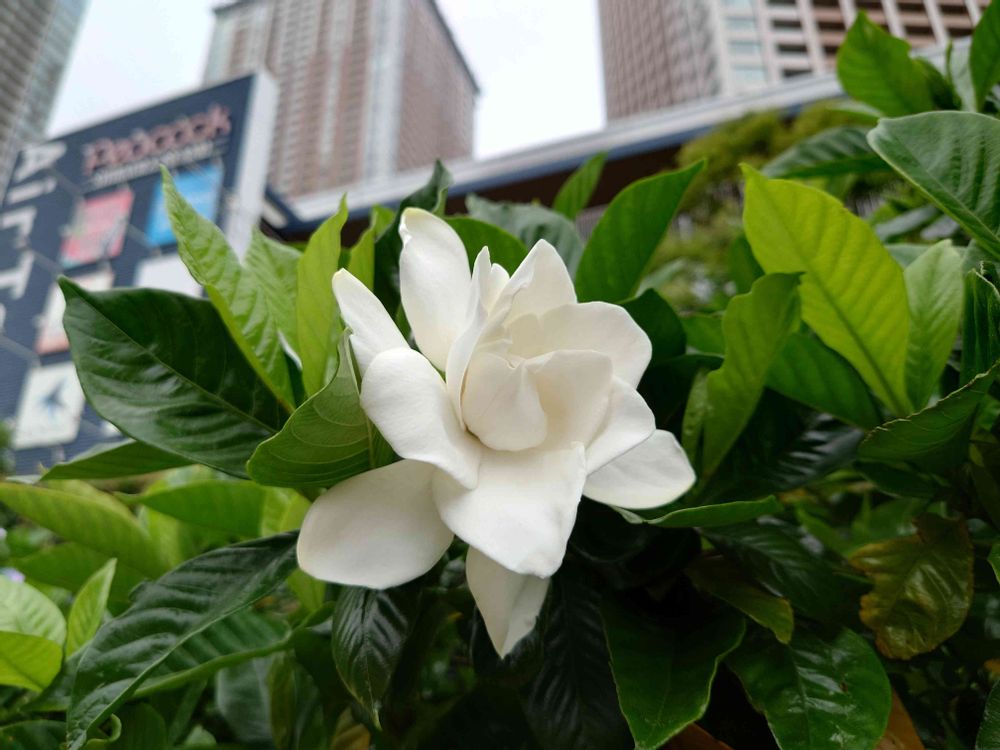 八重咲きクチナシの甘い香りに惹き付けられます。
