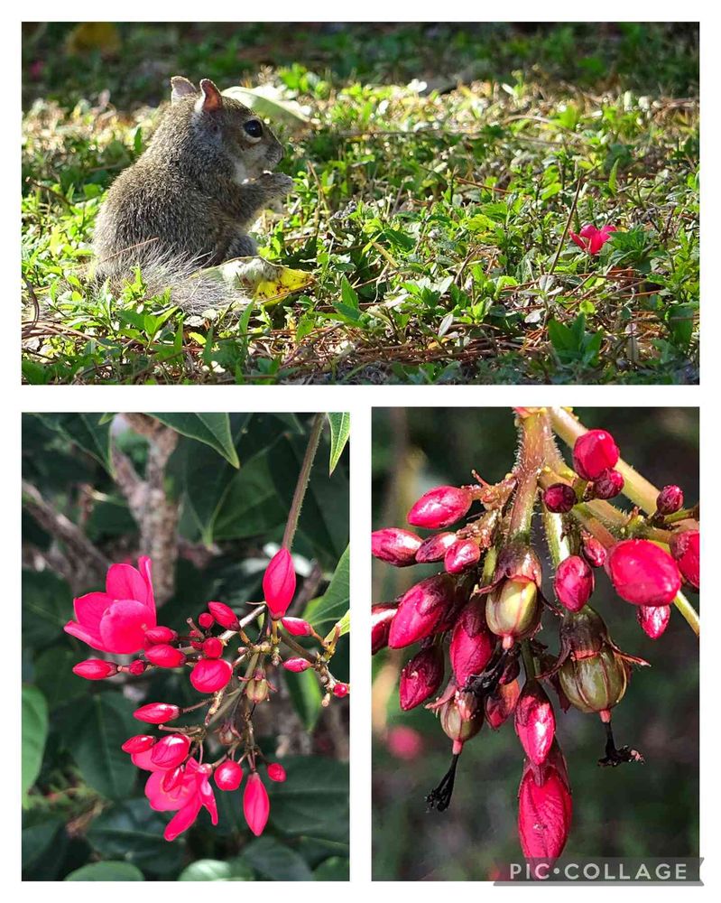 アボカドの季節には、落ちている実を早い者勝ちで拾うライバルですが、それ以外では距離を保って眺めています😊🐿