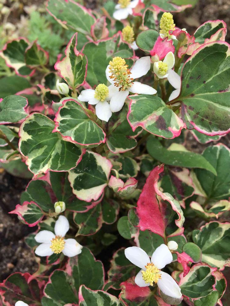 あまり増やしたくないので、鉢のまま埋めてあった五色ドクダミにお花が咲きました。