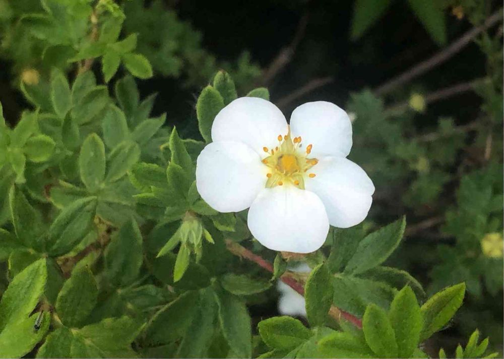 昨日の帰り道、駅の花壇の銀露梅(白露梅)。