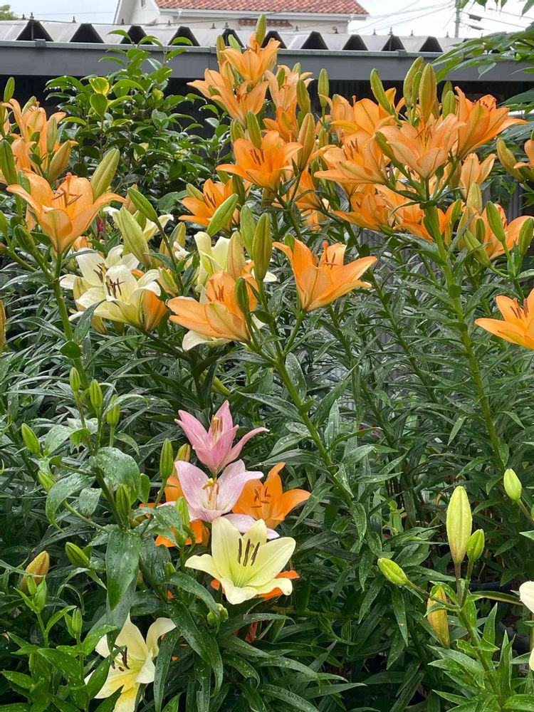 スカシユリが見頃を迎えました。今年はつぼみも大きく花も大きめです。草丈もいつもより大きいようです。