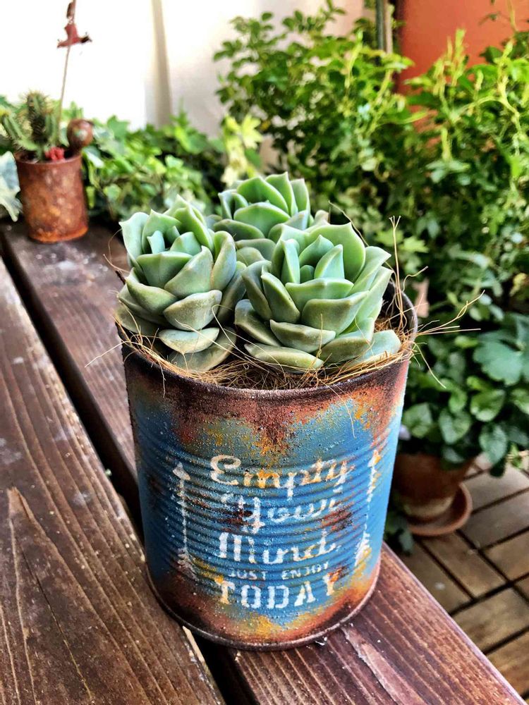 先日のGreenMarche横浜で購入したikuaさんのリメ缶へ、ラブリーローズさん💚にお引越し頂きました😌