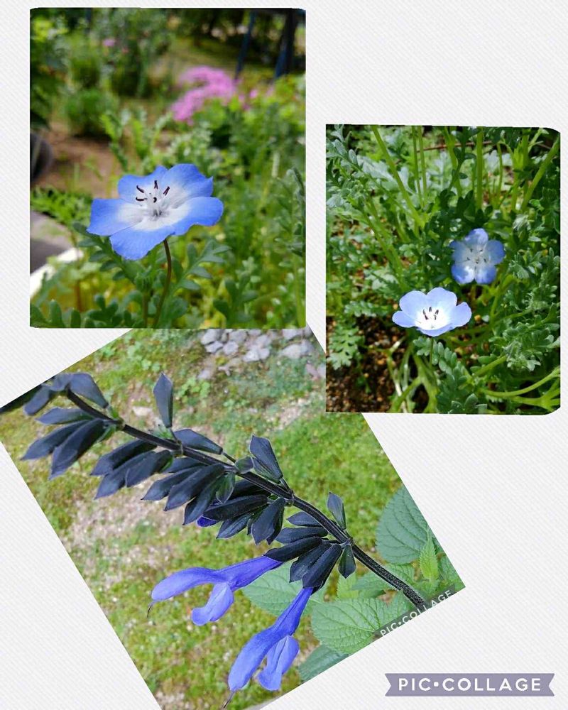 種から育てたネモフィラと 先日お迎えしたメドーセージが咲いてくれました💜💙💜💙💜💙