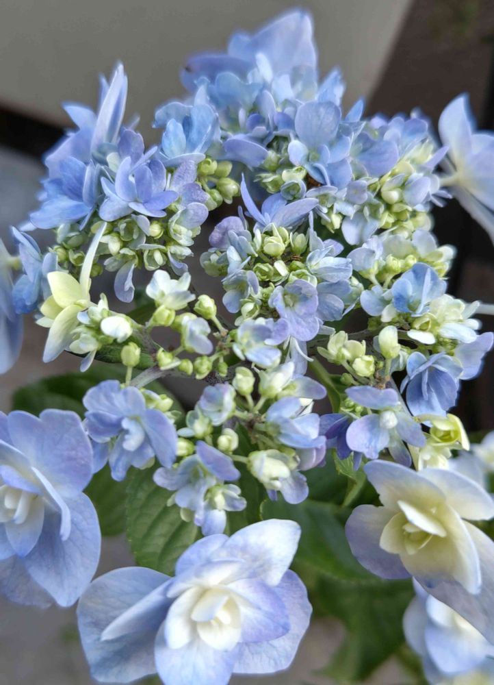 八重のガク咲き、花の中央の両性花も八重の細かな花になるという変わり咲きの珍しい花型