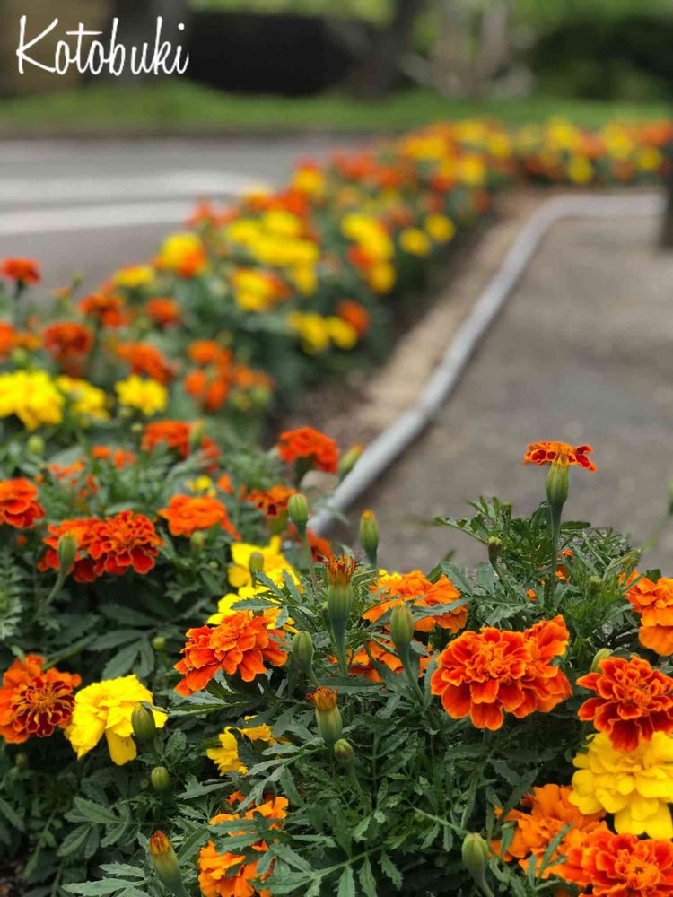 吉備津神社の参道にマリーゴールドの花壇があってオレンジとイエローのコントラストが元気をくれました😄💪