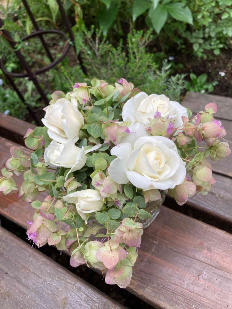 鉢替え前にカットしてしまいました。じっくり近くで見る事もなかったので、飾ってみましたが、アイスバーグの白と合わせると、柔らかな雰囲気になってくれました💕😊