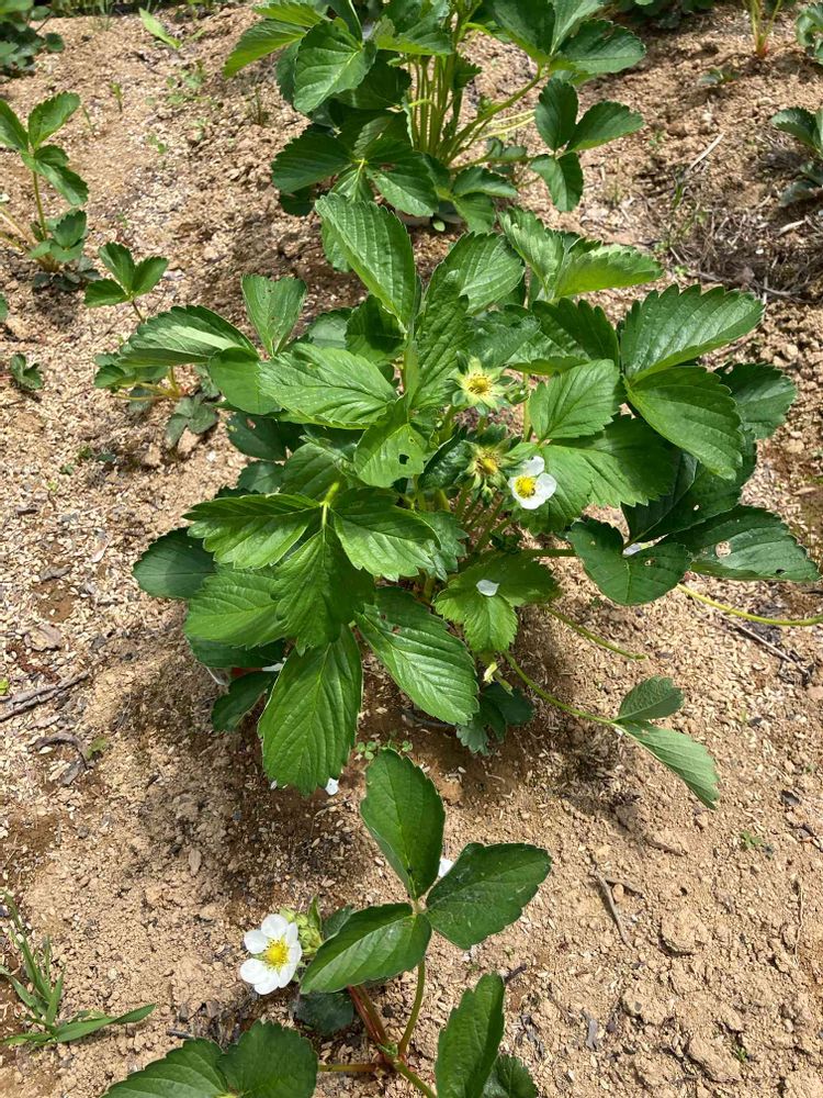 去年苗から植えた苺ちゃんも元気に花が咲いてきた😊