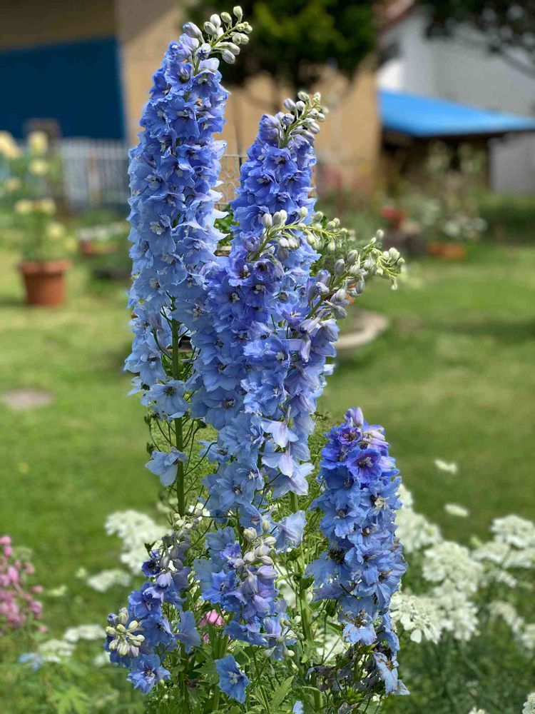 雨が降る前に倒れたデルフィニウムを立て直し、散った花びらをお掃除💙空がゴロゴロしてきて私はひと休みしよう🌿