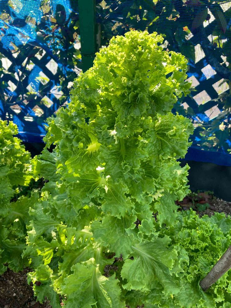 3月に植え付けたグリーンフリルレタス🥬。少し見ない間にグーンと伸びてしまいました。😥