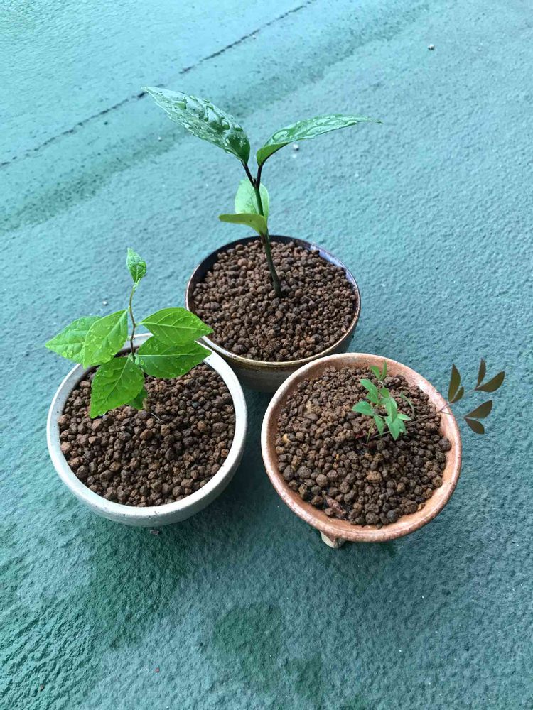 センリョウ(中庭に植えているセンリョウのこぼれ種から発芽していたもの)、黄実センリョウ(庭の黄実センリョウの種から繁殖)、ナンテン(庭に生えてた実生)を小鉢に移植しました。