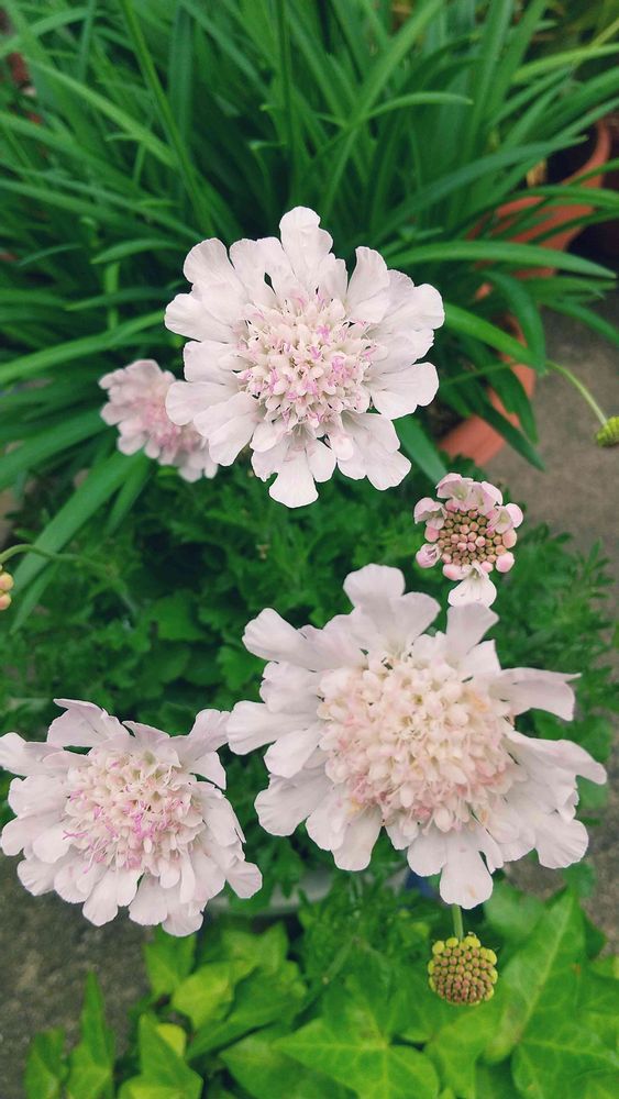 スカビオサだけだと、寂しいので、カンパニュラとアイビーに、入って貰いました。😂