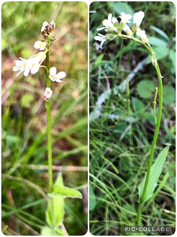 名前通り旗竿みたいなアブラナ科の「ハタザオ」ですね。ハタザオにはいくつか属があって山でよく見るのはこのハタザオとヤマハタザオですかね😊