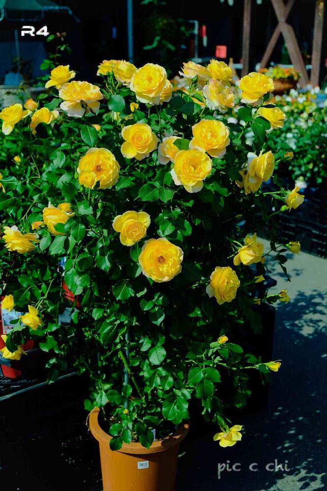 丈夫で育てやすく初心者向きの品種です。フェンスやトレリス向き。樹高:2.5m位まで生長し、つる性。花弁数:20~25枚位で花径7~8cm位。丸弁平咲き。