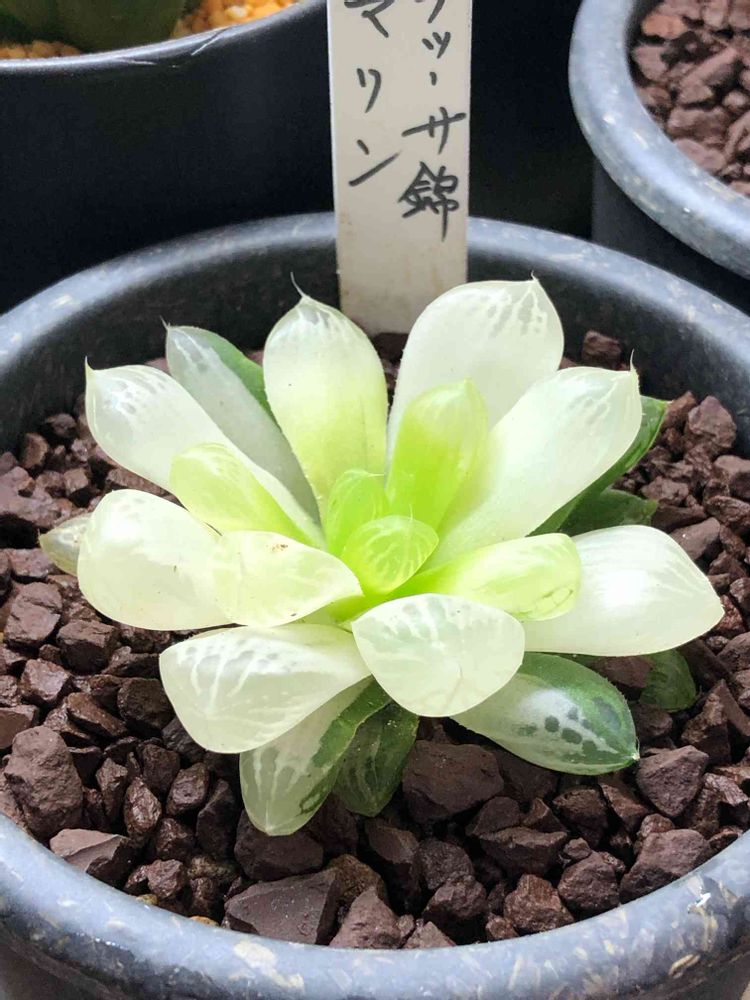 みくたさん!!私は今発見したのですが、私の家にあるオブツーサ錦マリンと、みくたさんのマリンちゃんの手書きの名札の筆跡が全く同じで、たぶん同じ生産者さんなのかなあと思いました🥰達筆だなあ、年配の方かなあと勝手に想像して印象的な名札だったので、みくたさんの投稿に見入ってしまいました☺️🌼