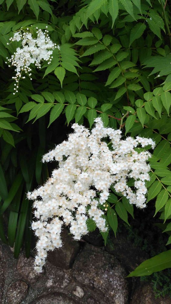 雄しべが長いので、ホザキナナカマドかなとも思うのですが、ニワナナカマドのpicにも雄しべが長いものもあるため、結局のところ、よくわかりませんでした😣