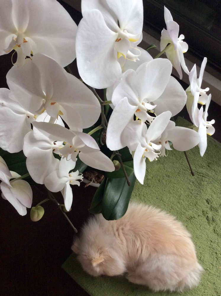 大輪胡蝶蘭 白 と ポメラニアン🐶ナナ