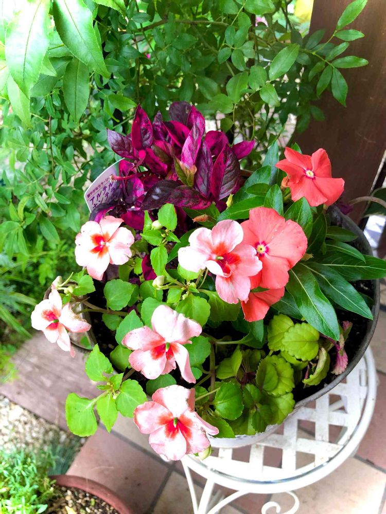 インパチェンスと日々草夏みかん アルテルナンテラレッドフラッシュ