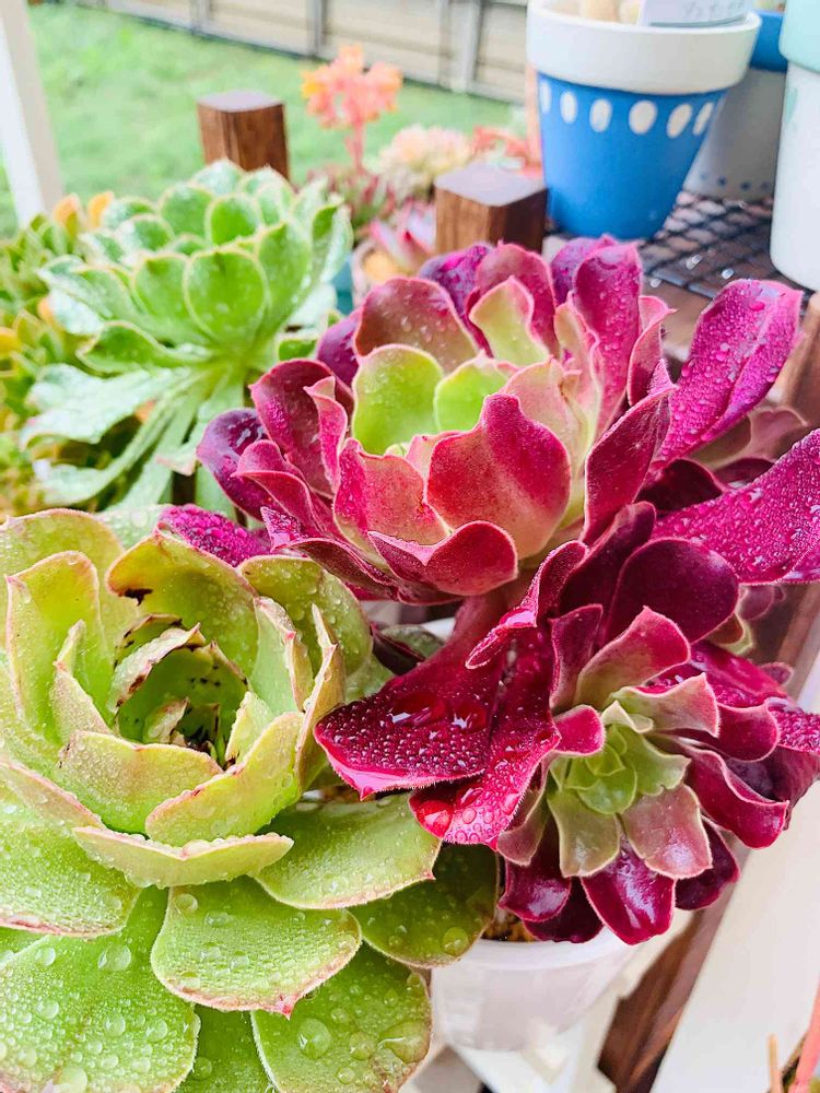 鮮やかな色合いに雨の水滴、似合いますね。素敵✨