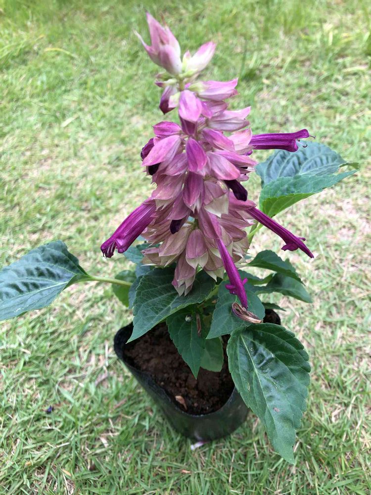 昨日行った激安園芸店で、こんな色のサルビアをお持ち帰りしました💕