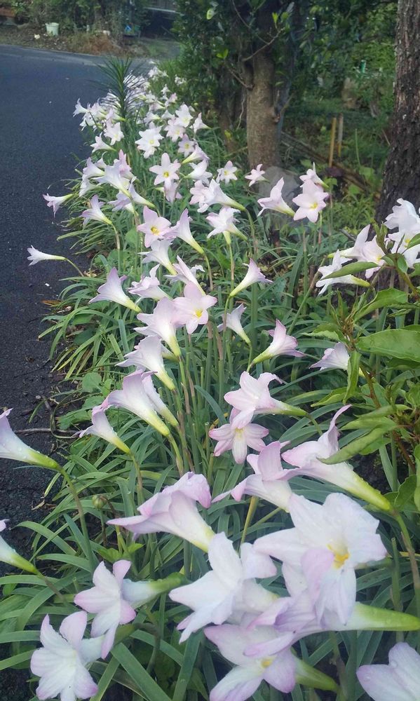 雨上がり☔️、裏道沿いに、いっぱいのゼフィランサスが咲きました🤗。