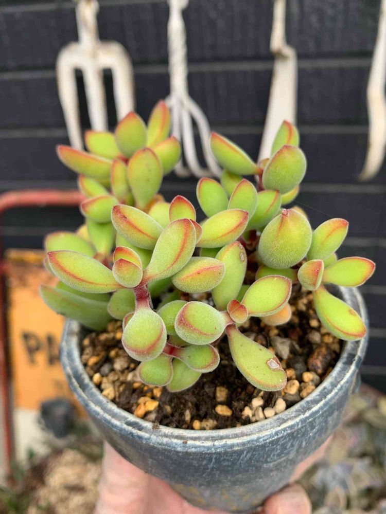 私も葉挿し成功したことないです😅挿し穂でいけます!!!単体植えだとモリモリ伸びて増えるので楽しいです。お花が面白いし、割とお水好きみたいです。黄色になったら追肥のサイン😆
