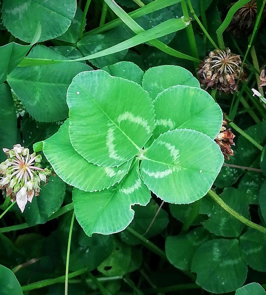 三つ葉と四つ葉と五つ葉が混在する面白いクローバー🍀です😅